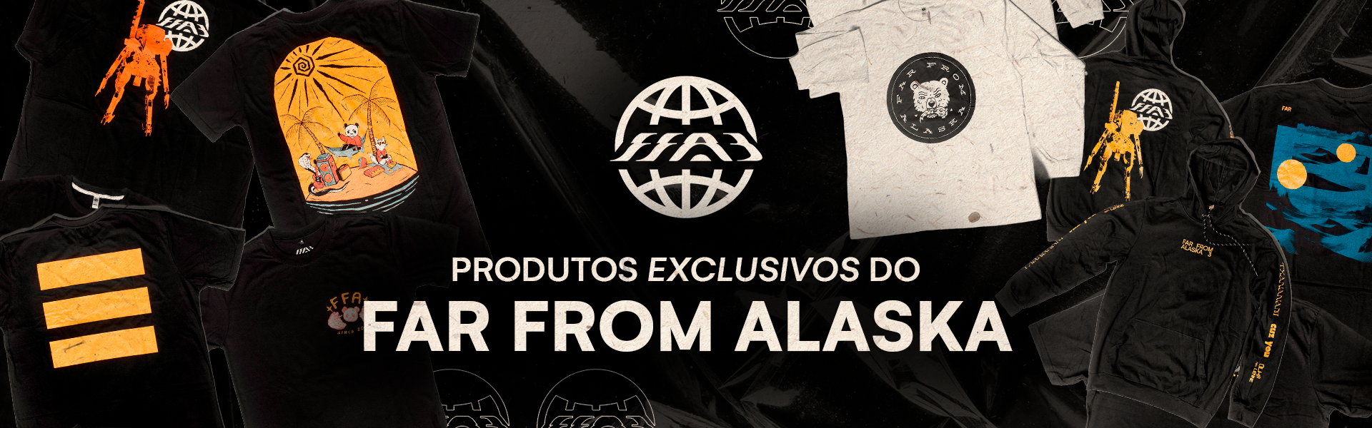 Camiseta Manga Longa Branca com logo (Urso e Pizza) em Preto da banda Far From Alaska.
